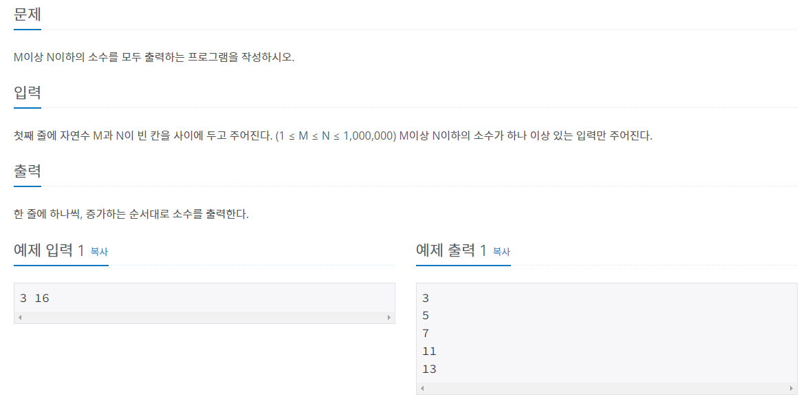 https://www.acmicpc.net/problem/4948 4948번: 베르트랑 공준 베르트랑 공준은 임의의 자연수 n에 대하여, n보다 크고, 2n보다 작거나 같은 소수는 적어도 하나 존재한다는 내용을 담고 있다. 이 명제는 조제프 베르트랑이 1845년에 추측했고, 파프누티 체비쇼 www.acmicpc.net n부터 2n까지의 소수 구하기 이번엔 제곱근을 이용하여 소수를 구해도 시간초과에 걸린다;; 문제에서 주어진 범위 내 소수를 먼저 구한 뒤 리스트를 대조하는 형식으로 문제 해결 덤으로 제곱근을 구하는데 파이썬 math 라이브러리를 import 하여 안에 정의된 sqrt 함수를 이용했다. from math import sqrt def prime(n): # 소수 구하기 if n == 1: ret..