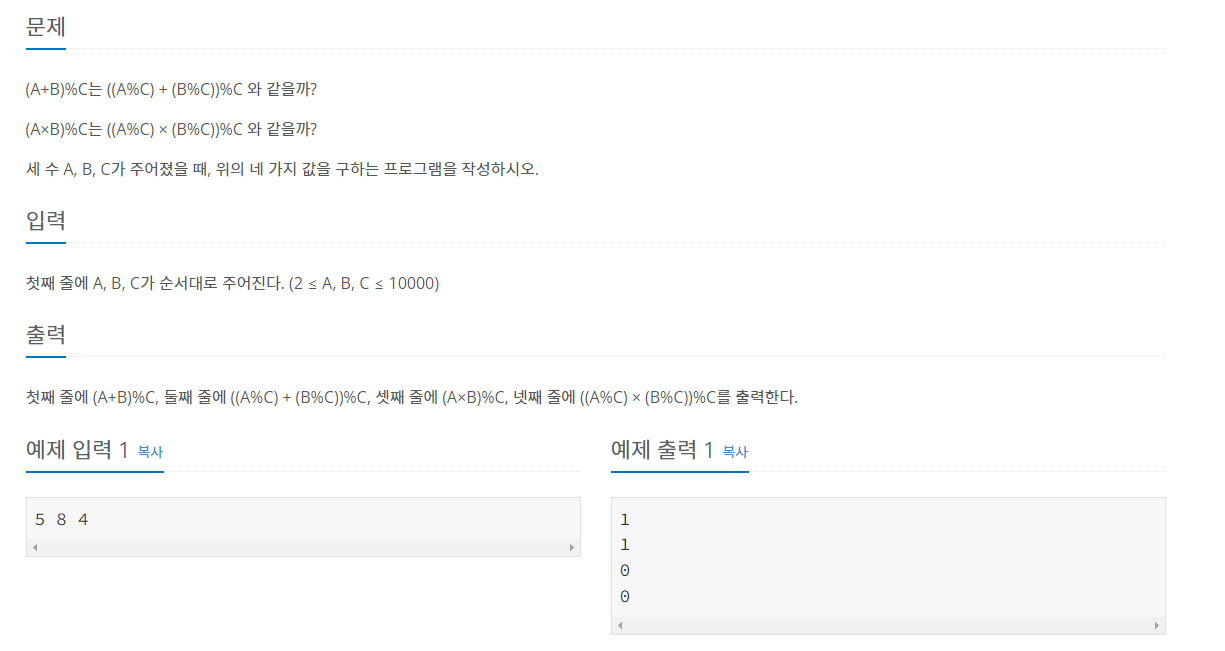 기본적으로 해온것처럼 A B C값을 map을 통해 받고 사칙연산 값을 출력한다.