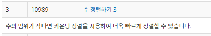카운팅 정렬(Counting Sort, 계수 정렬) - 주어진 배열의 값 범위가 작은 경우 빠른 속도를 갖는 정렬 알고리즘, 최댓값과 입력 배열의 원소 값 개수를 누적합으로 구성한 배열로 정렬을 수행한다.