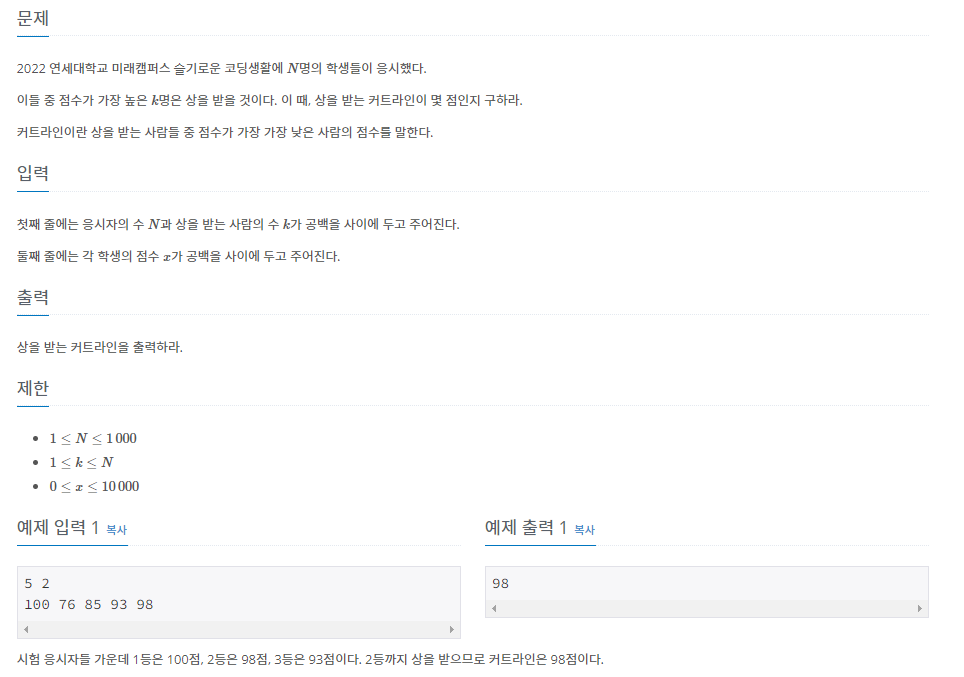 https://www.acmicpc.net/problem/25305