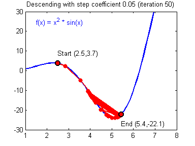 위의 그래프에서 만약 Learning rate가 작다면 어떻게 될까요? 초기 위치로부터 최소점을 찾는데까지 많은 시간이 걸릴 것입니다. 그리고 이 것은 학습하는데, 즉 최소값에 수렴하기까지 많은 시간이 걸린다는 것을 뜻합니다.