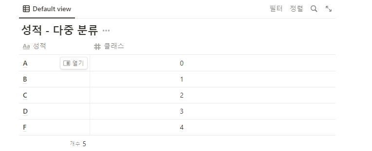 - 클래스를 5개의 클래스로 나누고 이 방법을 다중 분류(Multi-class classification, Multi-label classification)라고 부른다.