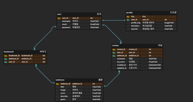 - 모델링을 할 때 one-to-one와 many-to-many 기능을 활용해주세요