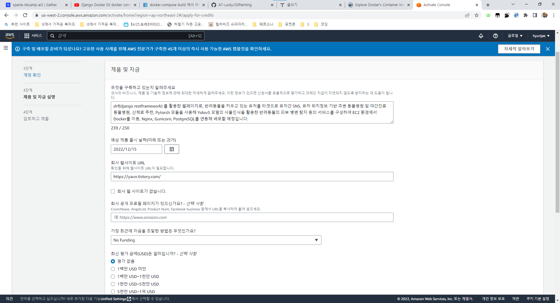 도커 허브에서 yolov5를 검색해보니 이미지 결과가 나오긴 하는데 얘를 가져다 쓰면 되려나? 일단 aws 포인트 신청부터 확정이 나면 실험해보겠는데..