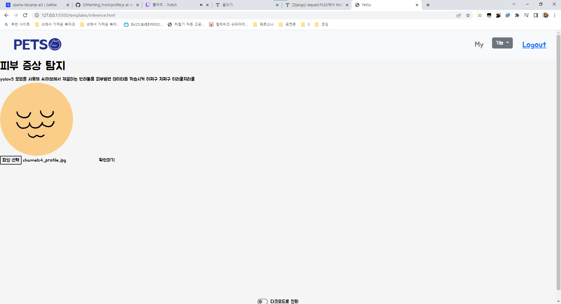 오늘의 한 일 최종 프로젝트 - 프론트엔드 연결 프론트엔드 연결 트러블 슈팅 - 병변 탐지 모델 포스트맨으로는 잘 적용되던 병변탐지가 자바스크립트를 통해 html상에서 이미지 파일을 받아서 POST 요청을 보내려고 하니까 처음에는 잘 작동하더니 이후로 잦은 에러가 발생 django.utils.datastructures.multivaluedictkeyerror: 'input_img' 에러 검색해보니 요청을 보낼 때 파일 없이 글만 작성하면 발생한다고 한다. [07/dec/2022 15:45:43,641] - broken pipe from ('127.0.0.1', 9436) 에러 잦은 입출력 호출로 발생한다고 한다. 예를 들어 처리 중인 요청을 사용자가 기다리지 않고, 새로고침이나 종료, 연속 클릭 등으로 ..